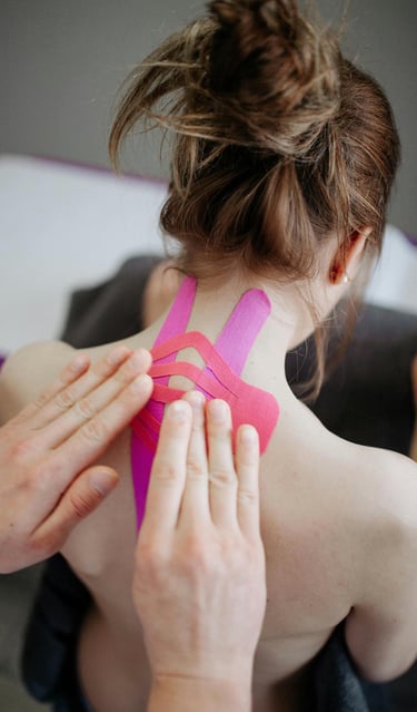 Il kinesio taping è un metodo terapeutico che utilizza cerotti elasticizzati colorati, spesso di tonalità vivaci, applicati sul corpo in caso di patologie ortopediche, linfatiche e neurologiche.